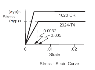 Yield strength of aluminum is: \(\sigma_{\mathrm{(yp)a}} = 55000\,psi\),