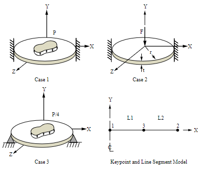 The stiffness matrix formed in the first load step is automatically reused in the second load step. A new stiffness matrix is automatically formed in the third load step because of changed boundary constraints. The mesh density is biased near the centerline and outer edge to recover stress values near those points.