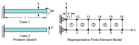 The stiffness matrix formed in the first load step is also used in the second load step (automatically determined by Mechanical APDL). The end moment is represented by equal and opposite forces separated by a distance h. The bending stress is obtained from face stresses on element 1.